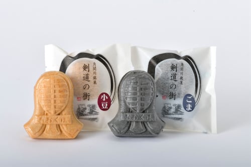 秋田県大仙市にある明治41年創業の酒と菓子の店「おおくぼ」の店主が、剣道の盛んなこの町で「剣道にちなんだ物」を何か作れないかと考え、試行錯誤の末に考案し、同店のヒット商品に成長した、自慢の一品です。