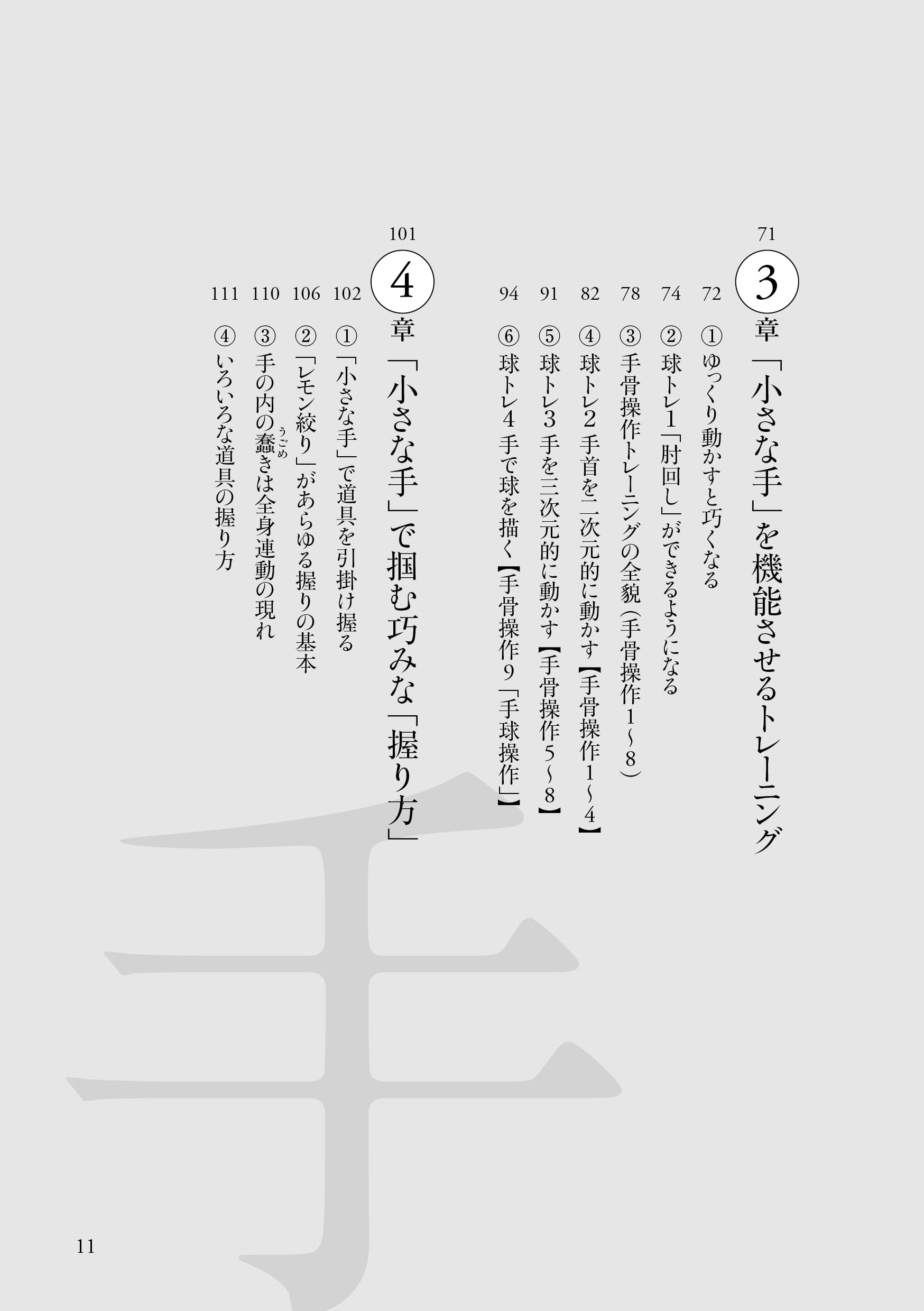 道具を巧みに操る手さばき、心の力みをほぐす眼づかい、膝や腰に負担のかからない歩き方。そうした「本来の動かし方」ができるようになるトレーニング法が紹介されているのが本書である。