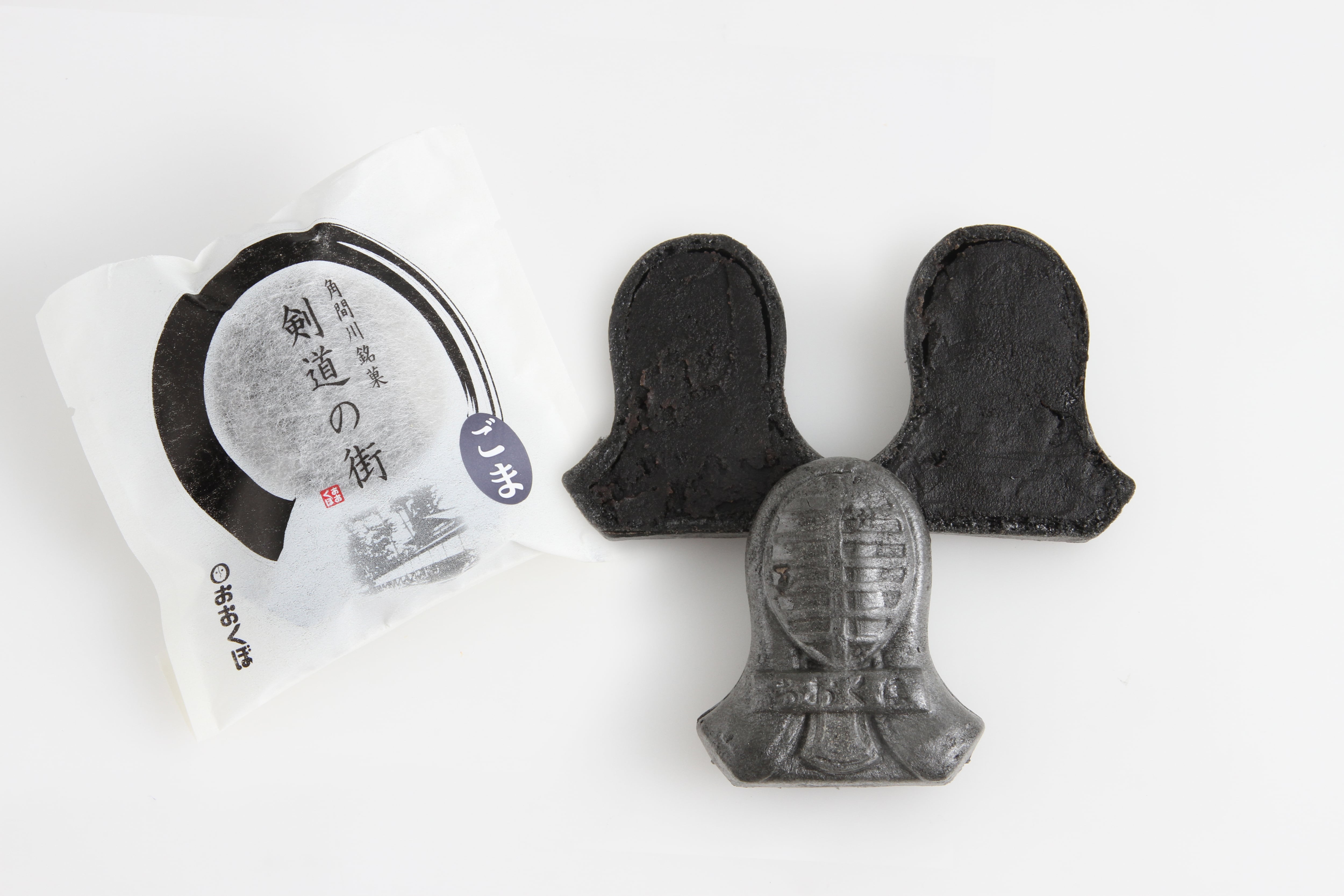秋田県大仙市にある明治41年創業の酒と菓子の店「おおくぼ」の店主が、剣道の盛んなこの町で「剣道にちなんだ物」を何か作れないかと考え、試行錯誤の末に考案し、同店のヒット商品に成長した、自慢の一品です。